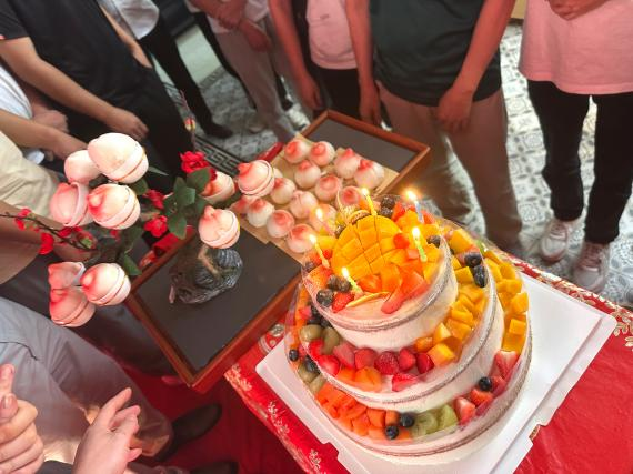 As the birthday song played, the cake customized in advance by the Administration Department was slowly pushed to the table. The candlelight danced and illuminated the smiling faces of the birthday stars. Beside the cake, small and cute longevity peach buns were placed, their pink and tender appearance exuding a strong birthday joy—this simple yet substantial arrangement hid the company's care for every partner and echoed our original intention of being down-to-earth in our career.